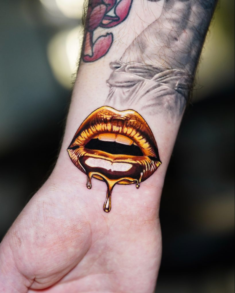 16. Gold Lips Tattoo