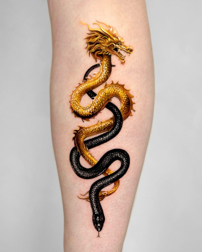 A striking dragon in gold and black, representing strength, power, and wisdom.