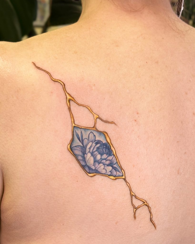 23. Geometric Frame Kintsugi Tattoo
