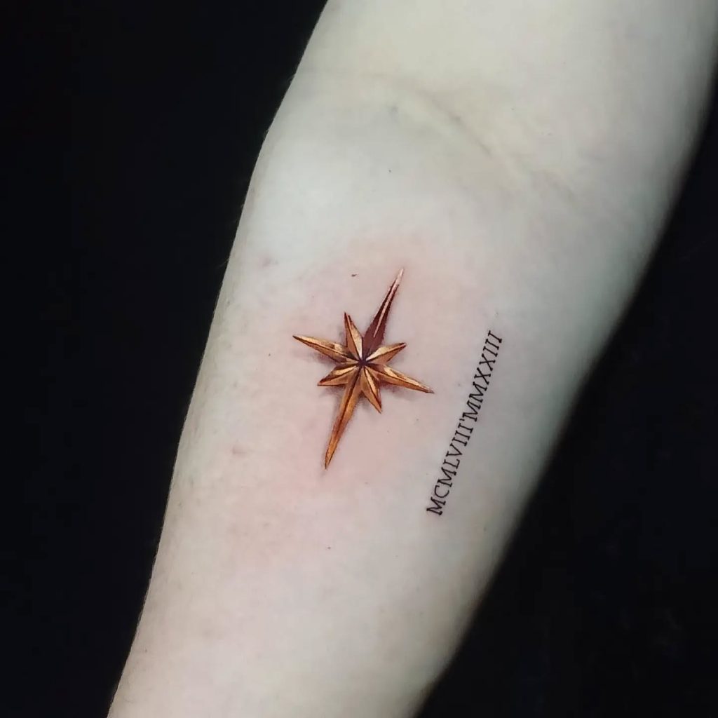 24. Gold Compass Star Tattoo